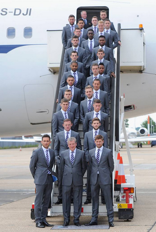 | Vor dem Abflug zur letzten Phase der WM-Vorbereitung in die USA posiert das englische Team am 1. Juni noch einmal für ein Mannschaftsfoto. |