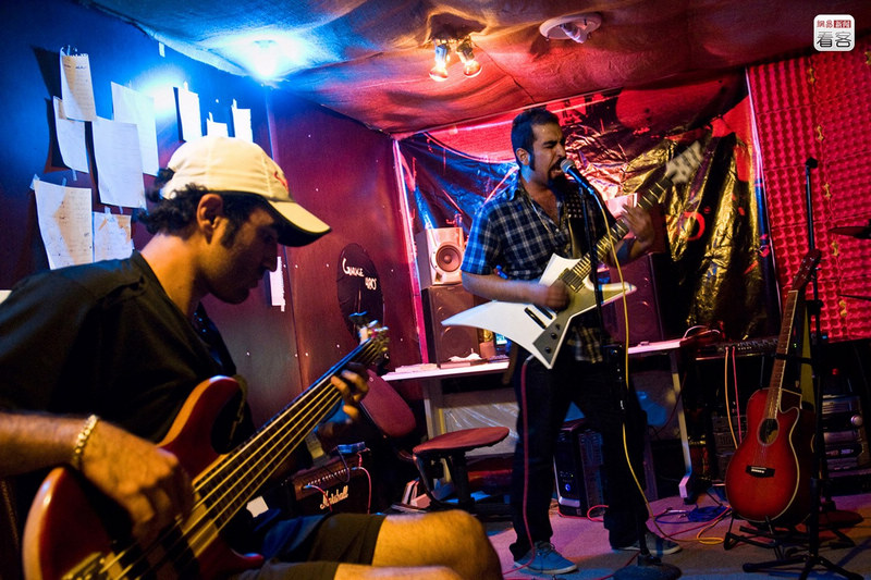 | Eine ?Untergrundband“ bei der Probe. Nach der Islamischen Revolution wurden alle Bars, Kinos und Theater geschlossen, und alle westlichen Filme und Lieder verboten. Viele Jugendliche gründeten daher ihre eigene ?Untergrundband“. |
