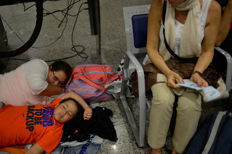 | Auf dem Flughafen in Fortaleza schlafen die Fu?ballfans direkt auf den Sitzen oder sogar auf dem Boden. |