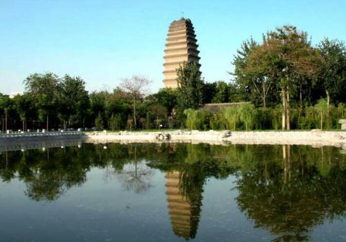 Die Kleine Wildganspagode befindet sich im Jianfu-Tempel im Süden der Stadt Xi’an. Ihr Name rührt daher, dass sie viel kleiner ist als die Gro?e Wildganspagode. Mit ihrem Bau wurde w?hrend der Regierungszeit des Tang-Kaisers Zhongzong (707 bis 710) begonnen. Die Kleine Wildganspagode wurde von der Kaiserin Wu Zetian in Erinnerung an ihren verstorbenen kaiserlichen Gemahl im Jahr 684 zusammen mit einer Tempelanlage in Auftrag gegeben. Ursprünglich war sie 15 Stockwerke hoch. Nach mehreren Erdbeben sind jedoch nur noch 13 Stockwerke übriggeblieben. Die Pagode ist 43 Meter hoch.