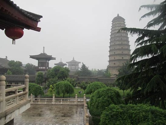 Das Famen-Kloster ist eines der berühmtesten buddhistischen Kl?ster Chinas. Im Famen-Tempel wird der Fingerknochen von Buddha Sakyamuni aufbewahrt. Das Famen-Kloster wurde w?hrend der ?stlichen Han-Dynastie errichtet und hie? in Anlehnung an Kaiser Ashoka ursprünglich ?Ayuwang Si“. Erst w?hrend der Tang-Dynastie erhielt es seinen heutigen Namen. Zu den Sch?tzen des Klosters geh?ren wertvolle Gold- und Silbergegenst?nde, Jade, Porzellan und Seidenbrokate aus der Tang-Dynastie. Die Seidenbrokate enthalten auch Gold. Ihre feinsten F?den sind mit einem Durchmesser von 0,1 Millimeter sogar noch dünner als ein menschliches Haar.