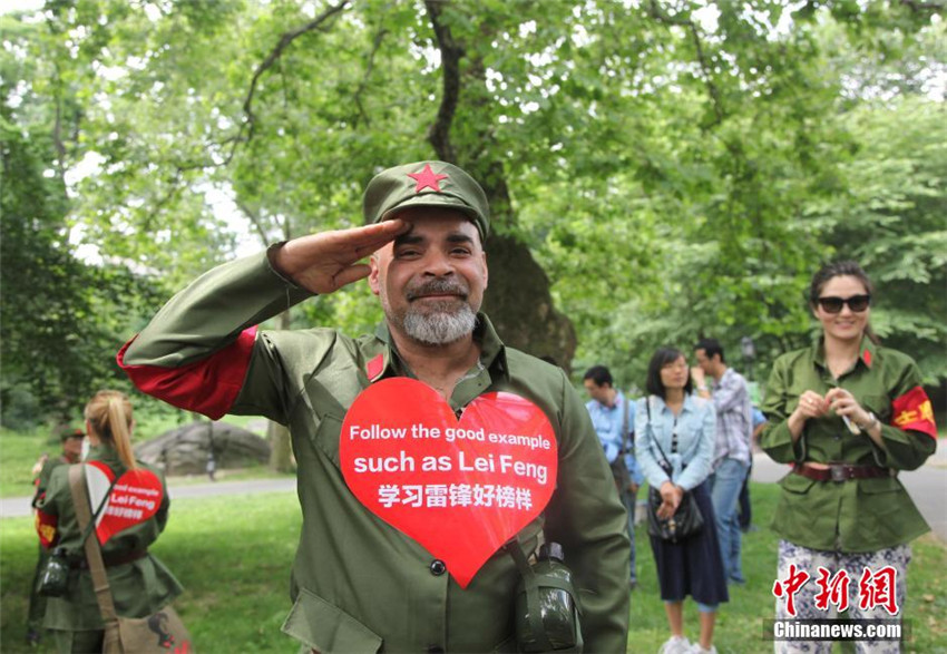 | Die freiwilligen Helfer tragen Uniformen wie der Mustersoldat Lei Feng. |