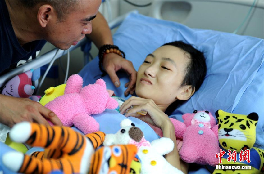 | Die 26-J?hrige ist gezeichnet von ihrem Kampf gegen den Krebs. |
