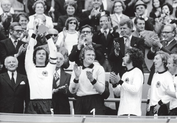 | 1974 wurde die WM zum ersten Mal in Deutschland - damals noch BRD - ausgetragen. ?Kaiser“ Franz Beckenbauer führte die Mannschaft an seiner dritten Weltmeisterschaft ins Endspiel, wo sie gegen die Niederlande zum zweiten Mal den Pokal gewann. |