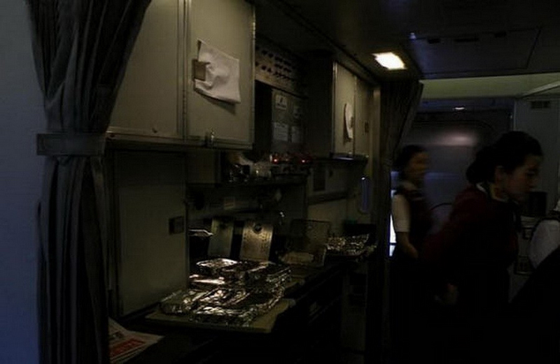 | Die Stewardessen bereiten das Essen in der Küche zu. |