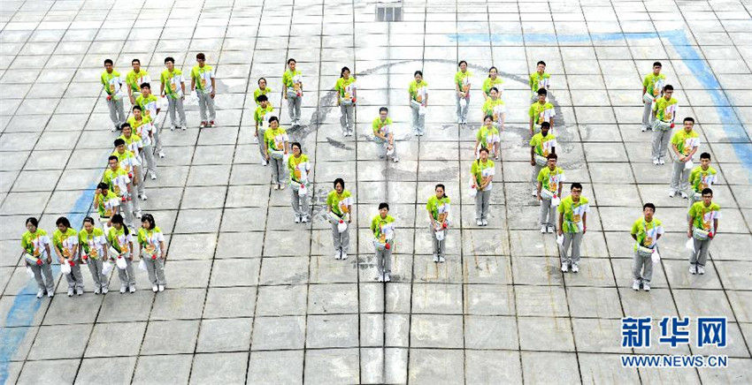 | Die Freiwilligen bilden ein ?I LOVE YOU“. (Foto: Yue Yuewei) |