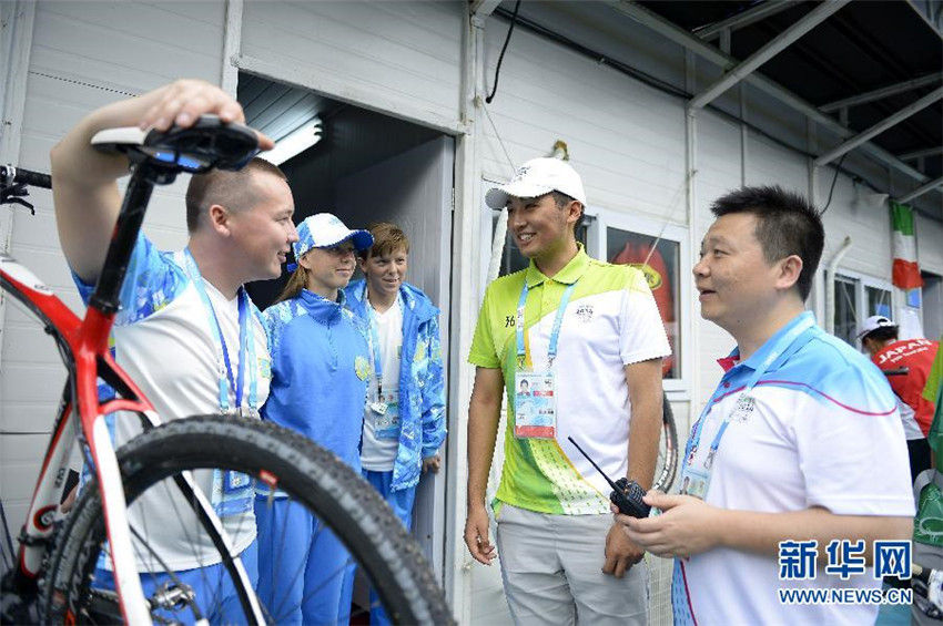 | Ein Freiwilliger aus Kasachstan kennt sich mit Kasachisch, Russisch, Englisch und Chinesisch aus. Er geh?rt zum Sprachen-Dienstleistungsteam für Radrennsport. (Foto: Zhang Hongxiang) |