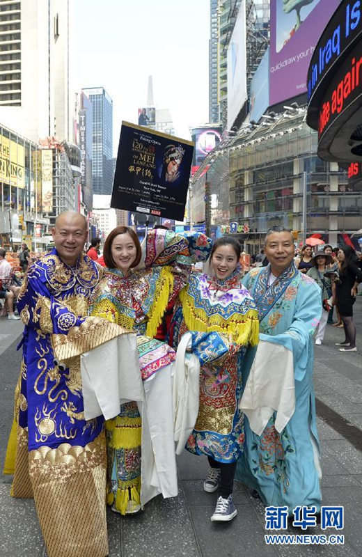 | Darsteller der Mei Lanfang-Operntruppe auf dem Times Square in New York |