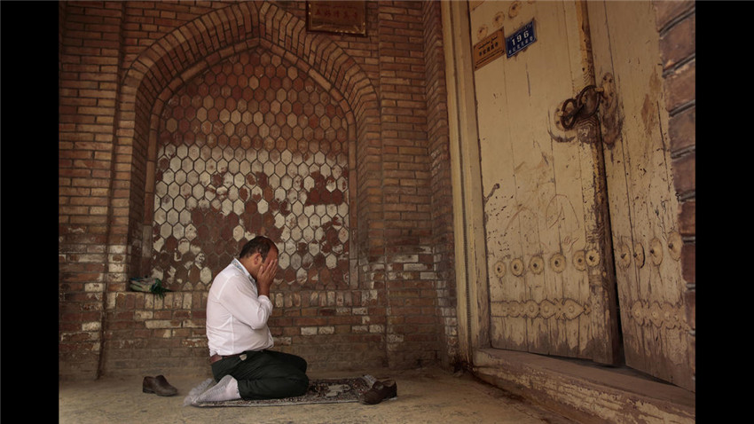 | Ein Mann betet im alten Stadtviertel, das bei Touristen sehr beliebt ist. |