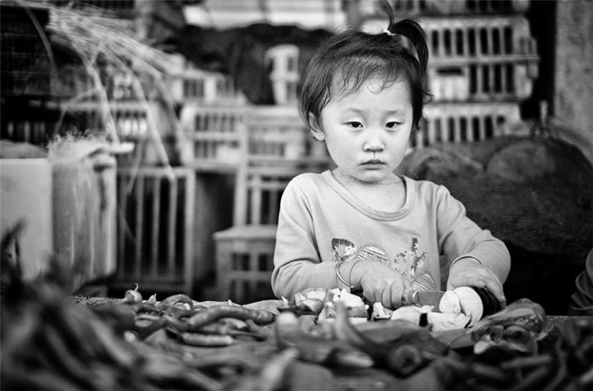 | Das M?dchen hilft ihrer Mutter bei der Vorbereitung des Abendessens. |