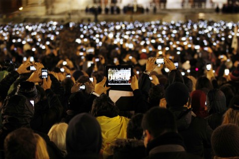| Dieses Foto aus dem Jahr 2013 zeigt, dass das Handy inzwischen zu einem unersetzbaren Massenmedium geworden ist. |