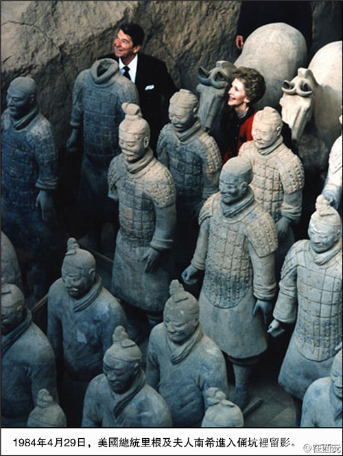 Pr?sident Reagan und seine Frau flogen mit der Air Force One nach Xi’an und besuchten das Museum der Terrakotta-Armee. Reagan war tief beeindruckt von der antiken chinesischen Zivilisation.