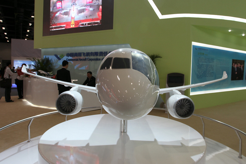| Das Modell von C919 bei einer Ausstellung. |