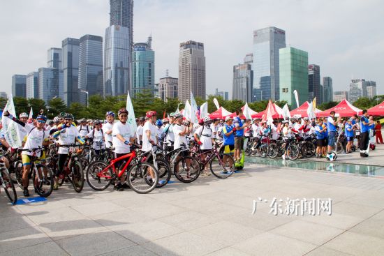 | Fast einhundert Personen aus Shenzhen nehmen an einer Fahrrad-Aktivit?t teil, um die Benutzung dieses umweltfreundlichen Verkehrsmittels zu f?rdern. |