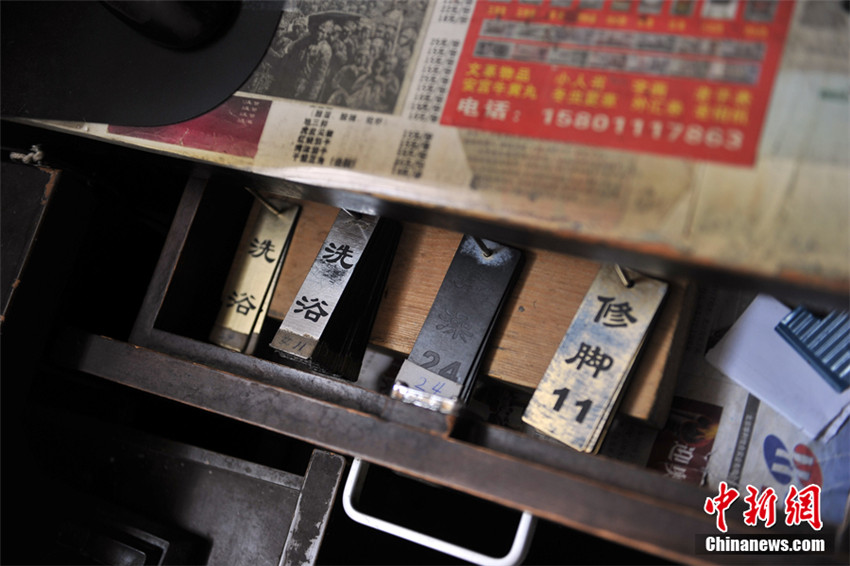 | Einmal Baden kostet 15 Yuan (zwei Euro). Im Winter konnte das Badehaus pro Tag maximal 80 G?ste empfangen. Seine kleinen B?der und der teure Wasserpreis warfen kaum Gewinn ab. Das Foto zeigt die Handkarten in einer kleinen Schublade neben der Kasse. Die jahrelange Benutzung ist ihnen deutlich anzusehen. |