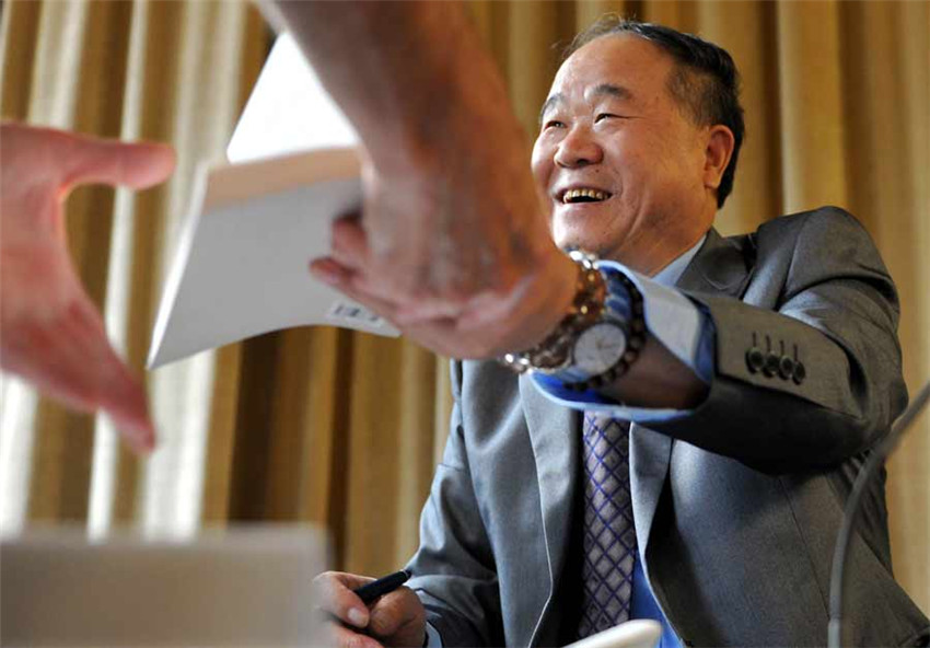 | Mo Yan signiert eine Neuauflage seines Buches Gro?e Brüste und breite Hüften. |