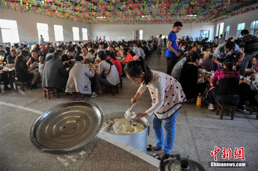 | Das Hochzeitsbankett findet in einer gro?en Halle der l?ndlichen Gemeinde statt. |