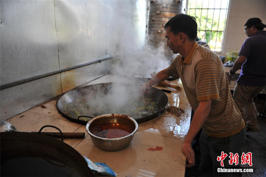 | Die Familie des Hochzeitspaars bereitet zusammen mit Aushilfen vom Dorf die Gerichte vor. |