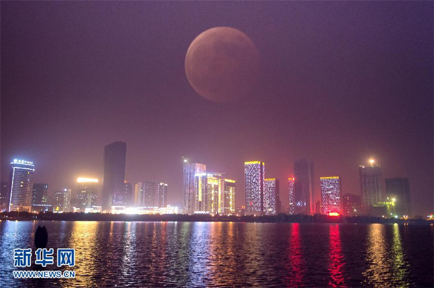 | Fotoaufnahme vom Blutmond in Hefei, der Hauptstadt der Provinz Anhui (Foto: Guo Chen) |