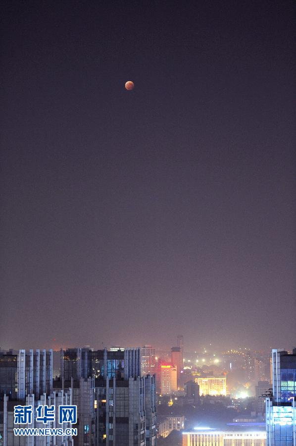 | Fotoaufnahme vom Blutmond gegen 19 Uhr im Stadtzentrum von Nanjing (Foto: Sun Sheng) |