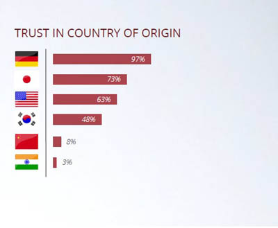 So wie Benjamin scheinen viele Deutsche zu denken. Prinzipiell schlie?en die Verbraucher den Kauf eines Produkts "Made in China" nicht aus, doch es mangelt an Vertrauen. Laut der Umfrage der TU Berlin sollen lediglich rund 20 Prozent der Befragten Marken aus China vertrauen. Nach wie vor hegen deutsche Verbraucher Zweifel an der Qualit?t und Langlebigkeit von Elektro- und Haushaltsger?ten aus dem Reich der Mitte. Die meist negative Berichterstattung in deutschen Medien über chinesische Produkte hat ihr übriges getan. Markus Siegert, Experte für den Haushaltsger?temarkt in Deutschland, erkl?rt: