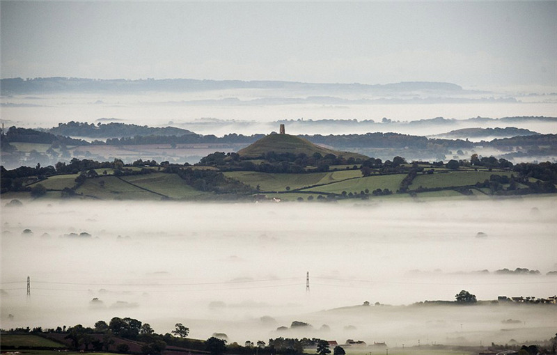 | Der Glastonbury Tor im Nebel. |
