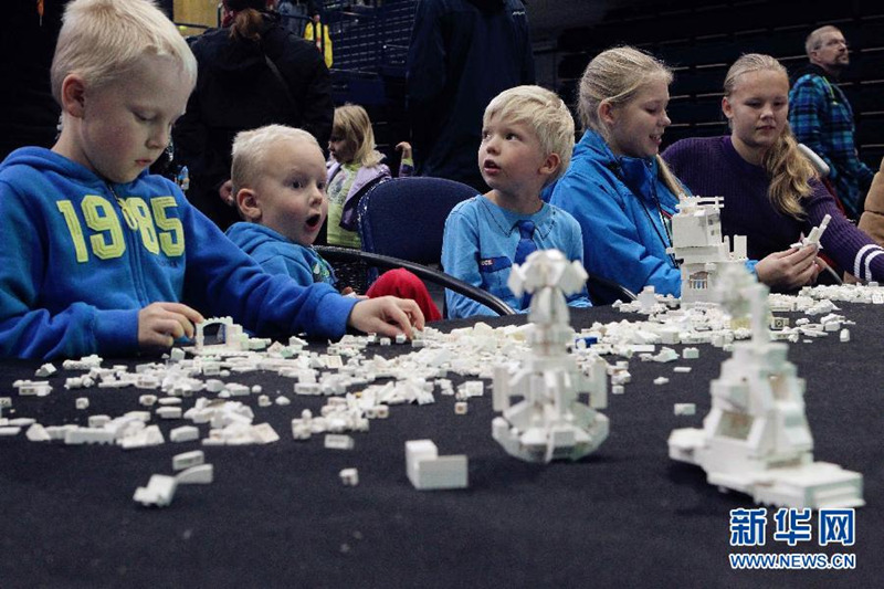| Kinder bauen gemeinsam an der ?Lego-Stadt“. |