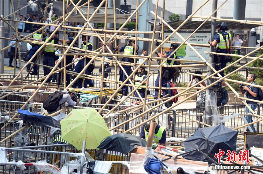 Hongkonger Polizei entfernt Stra?ensperren (6)