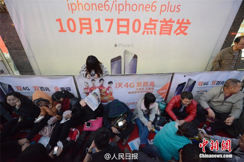 | Schon um Mitternacht warten die ersten Apple-Fans vor den L?den auf die neuen iPhones. (Fotoquelle: Sina Weibo von People Daily) |