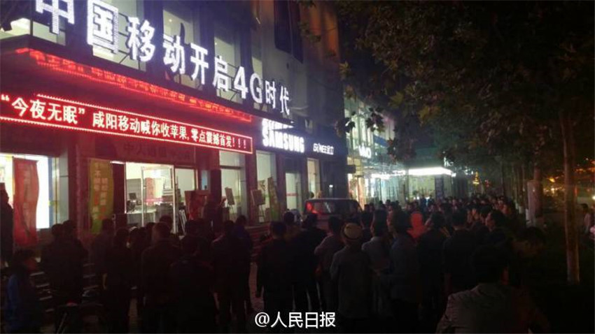 | Schon um Mitternacht warten die ersten Apple-Fans vor den L?den auf die neuen iPhones. (Fotoquelle: Sina Weibo von People Daily) |
