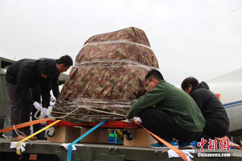 | Die Rückkehr-Sonde wird nach Beijing gebracht. (Foto: Zhang Su) |