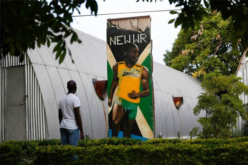 | In Kingston, Jamaika. Auf dem Mauerstück ist ein Bild von Usain Bolt zu sehen. |