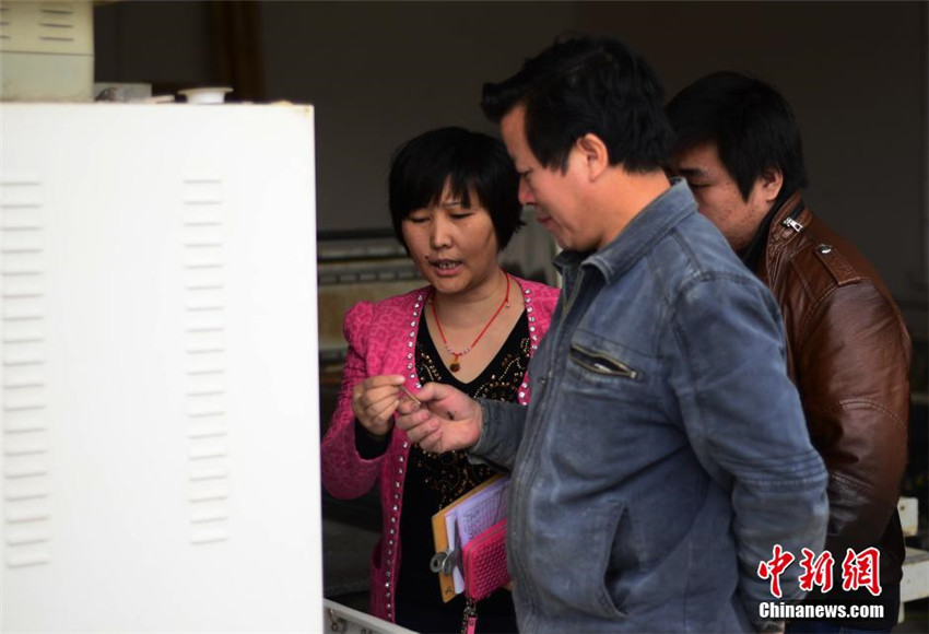 | Xing Qiaomei stellt den Kunden ihre neuen Produkte vor. |