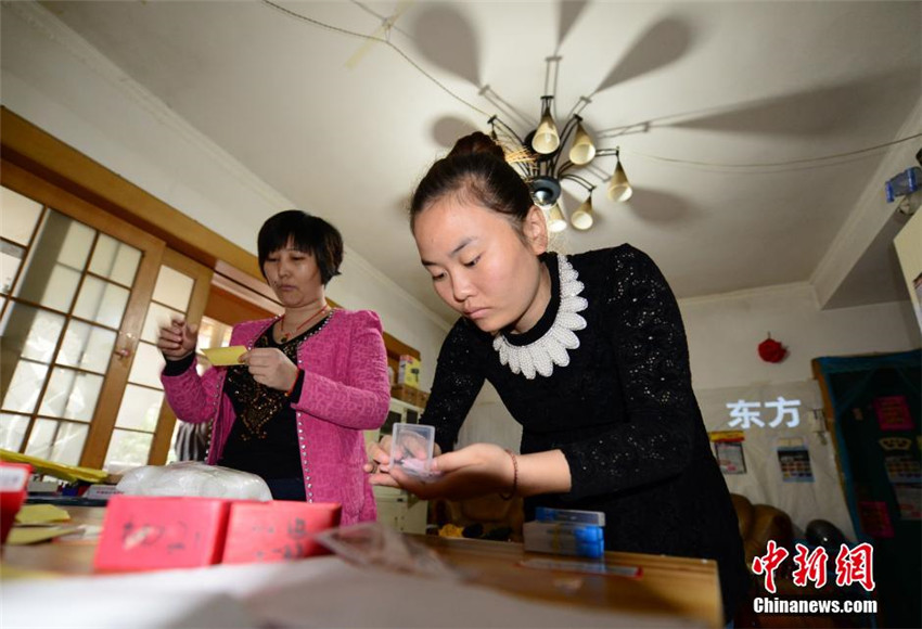 | Xing Qiaomei (links) und ihre Schwiegertochter verpacken sorgf?ltig die Ware, die am n?chsten Tag zugestellt werden soll. |