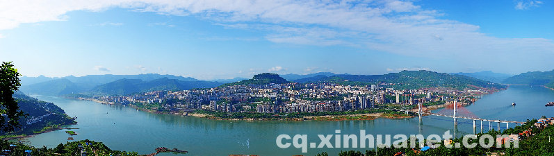 | Ein Panoramabild der ?Stadt der Treppe bei den Drei Schluchten“. |
