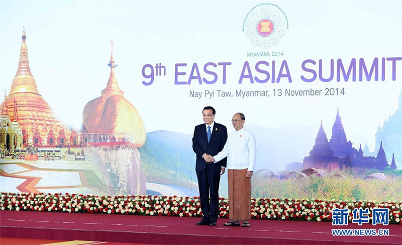 | Li Keqiang wird von Myanmars Staatspr?sident Thein Sein begrü?t, bevor der Gipfel stattfindet. |