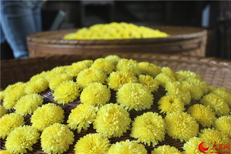 | Im Herbst werden rote Chilischoten, orange Kürbisschnitze und gelbe Chrysanthemenblüten zum Trocknen auf die D?cher gelegt. Zusammen ergeben sie eine wunderbare Farbenpracht. |