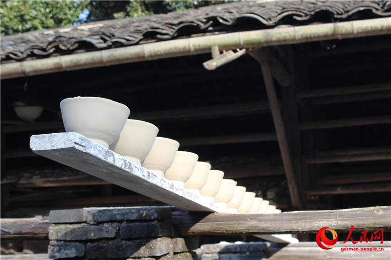 | Museum der alten Brenn?fen: Halbfertigte Porzellanschalen werden an der Sonne getrocknet. |