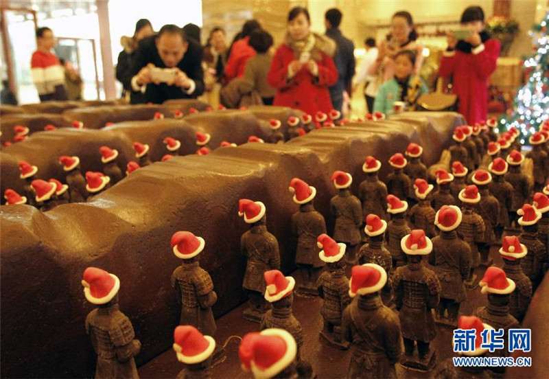 | Die Terrakotta-Armee aus Schokolade in Xi’an. (Foto: Xinhua/Jiao Hongtao) |