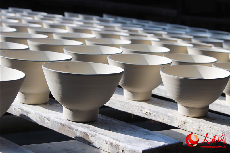 | Museum der alten Brenn?fen: Halbfertigte Porzellanschalen werden an der Sonne getrocknet. |