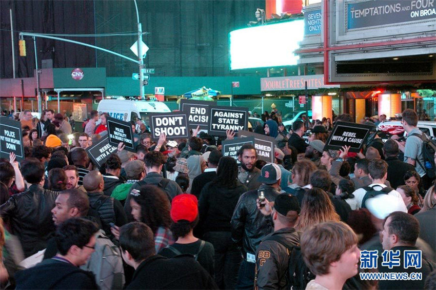 | Nach den Ausschreitungen in der vergangenen Nacht gehen in New York die Menschen weiter auf die Stra?e. |