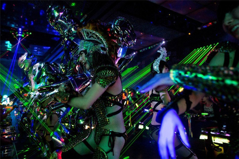 | Am 29. Juni 2014 tritt ein gro?er Roboter in einem Restaurant im Rotlichtviertel von Tokio zusammen mit T?nzern auf. Das Restaurant wurde vor zwei Jahren mit rund zehn Millionen US-Dollar gegründet. Die Roboter-Aufführung findet dreimal t?glich statt. Sie richtet sich vor allem an ausl?ndische G?ste. |