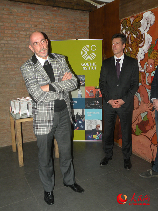 | Der Leiter des Goethe-Instituts Peter Anders spricht bei der Abschlusszeremonie, dass er sich darüber sehr freue, dass die vier Tandempaare durch diese Gelegenheit ihre Kompetenzen zur L?sung der Probleme beim transkulturellen Austausch verst?rkt haben. |