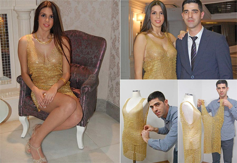 Der türkische Juwelier Ahmet Atakan hat eine vergoldetes Kleid geschaffen. Der Rock besteht aus 78,000 Stücken Gold mit einem Preis von rund 108,000 Euro. Trotz des hohen Preises sind schon 8 Stücke verkauft worden.