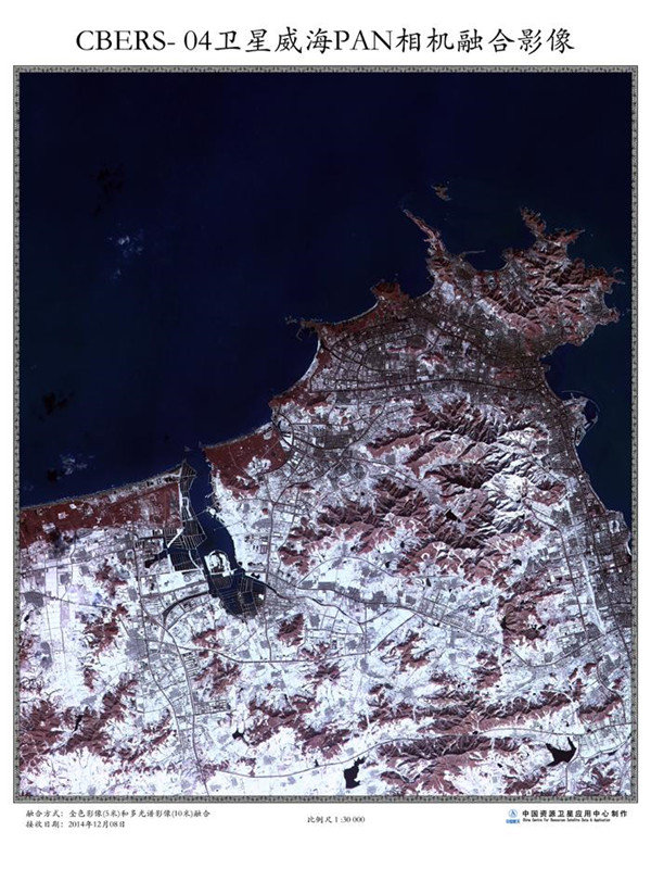 | Eine Fernerkundungsbildfusion von Weihai, aufgenommen mit der PAN-Kamera. |