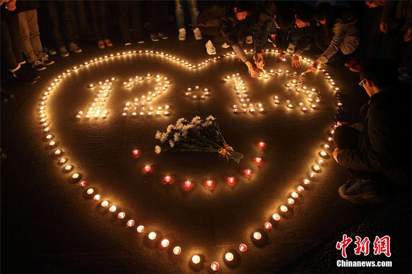 | Studenten in Nanjing gedenken mit Kerzen den Opfern des Nanjing-Massakers. |