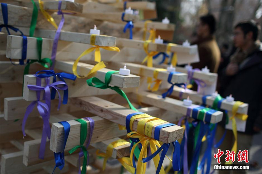 Studenten in Nanjing gedenken den Opfern des Nanjing-Massakers.