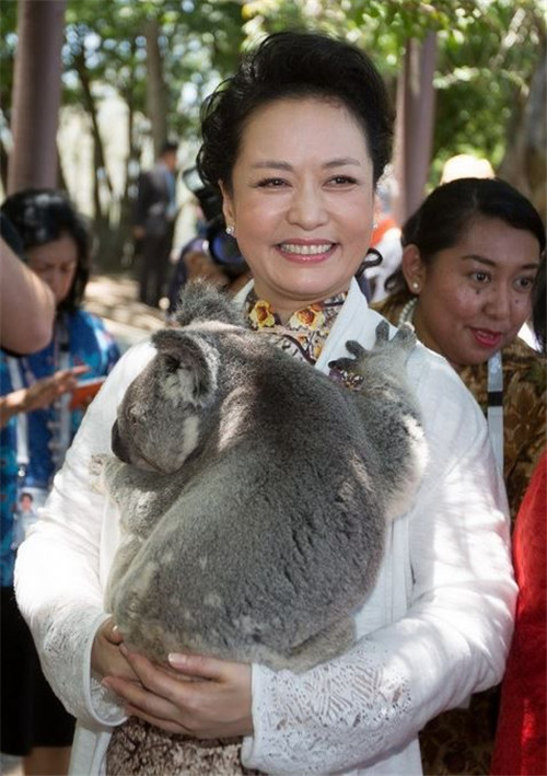 Das Foto der First Lady Peng Liyuan mit einem Beutelb?r in Australien wird von den chinesischen Netizen als ?萌萌噠“ ausgezeichnet.