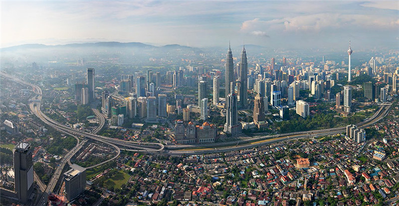 Kuala Lumpur. Die Petronas-Türme (oft auch Petronas Twin Towers genannt) in dem Bild sind ein vom Mineral?lkonzern Petronas gebautes Wolkenkratzerpaar in Kuala Lumpur, der Hauptstadt Malaysias. Mit insgesamt 452 Metern H?he überragen die Zwillingstürme die Stadt und waren einmal die h?chsten Geb?ude der Welt.