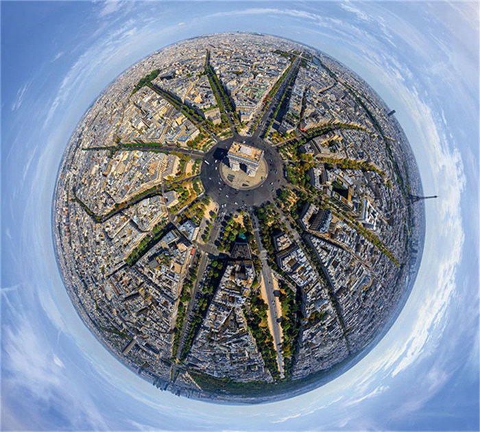 | Paris. Der Kameramann nahm die Stadt der Tr?ume aus einer au?ergew?hnlichen Perspektive auf. Im Zentrum des Fotos ist der weltweit berühmte Triumphbogen. |